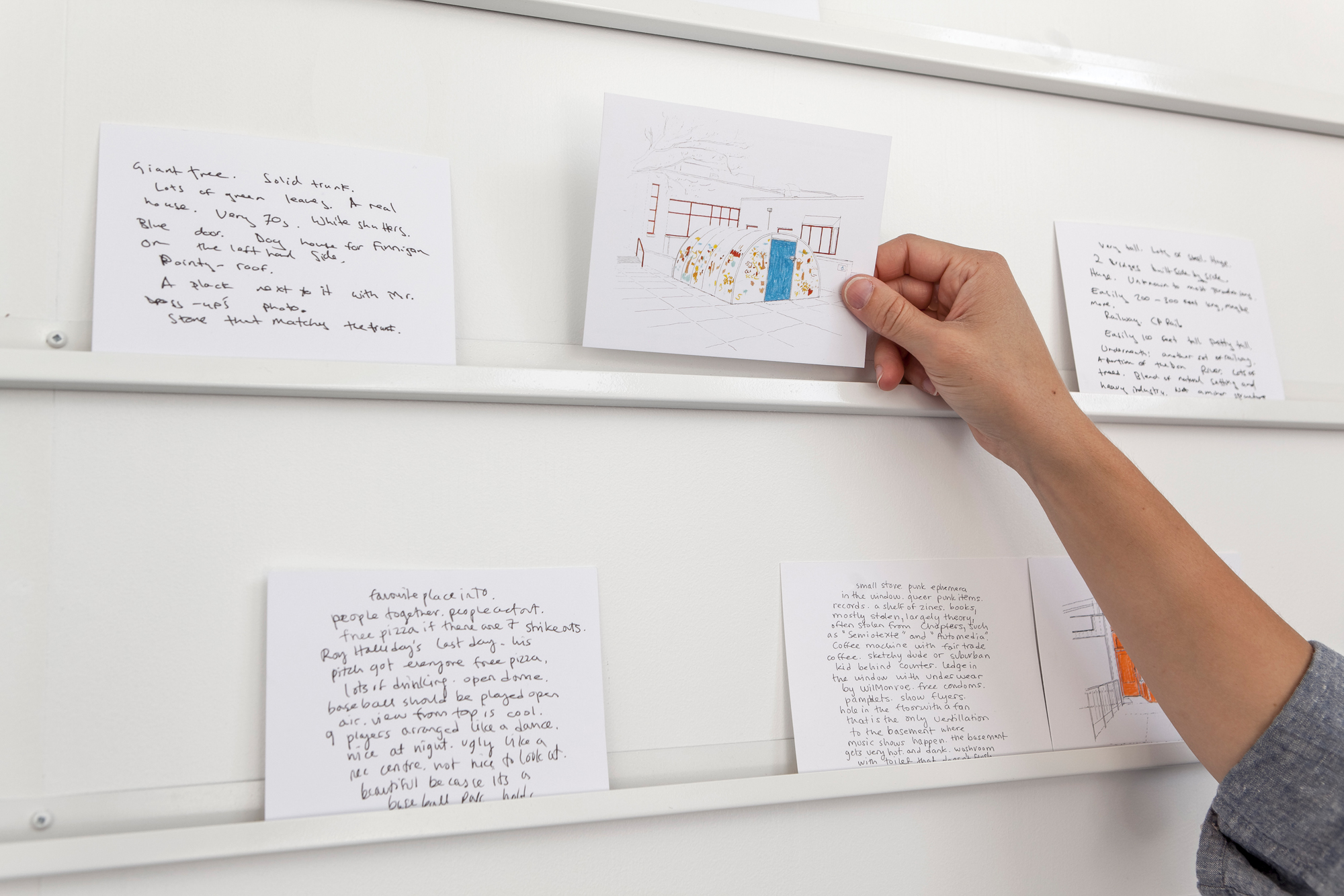 Through her interactive approach, Brisson elicited interest in taking a closer look at the urban environment, unearthing emotional connections and shared experiences of the city. Considering notions of landmark and monument as well as their role in recording and anchoring public memory, Local Colour Info Centre revealed the many facets of Toronto in the imagination of its inhabitants.